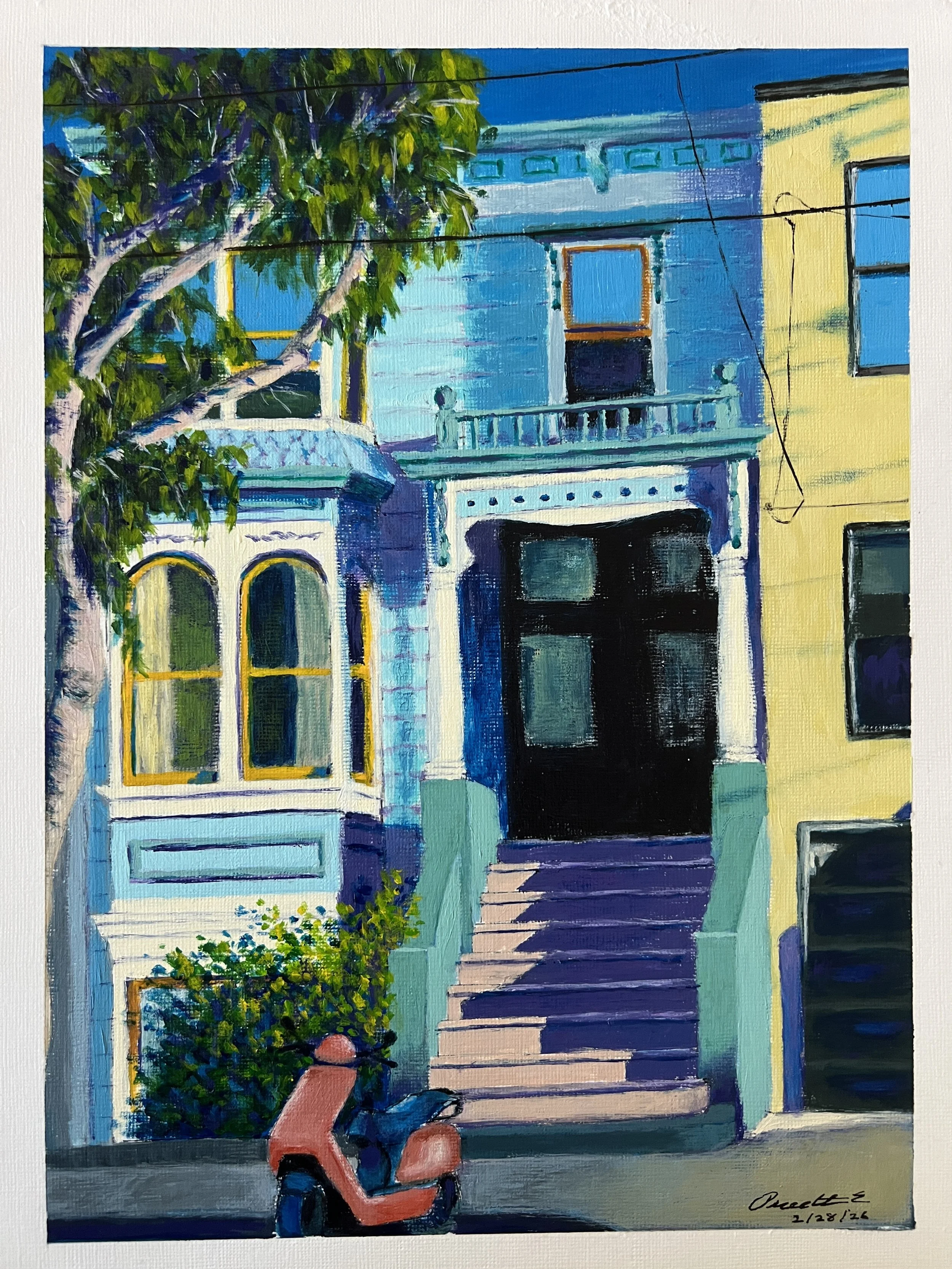It was hard to do small paintings, but I did it! Finished two 8”X8”s! Titles are “Sunday Morning” and “Monday Morning”.
