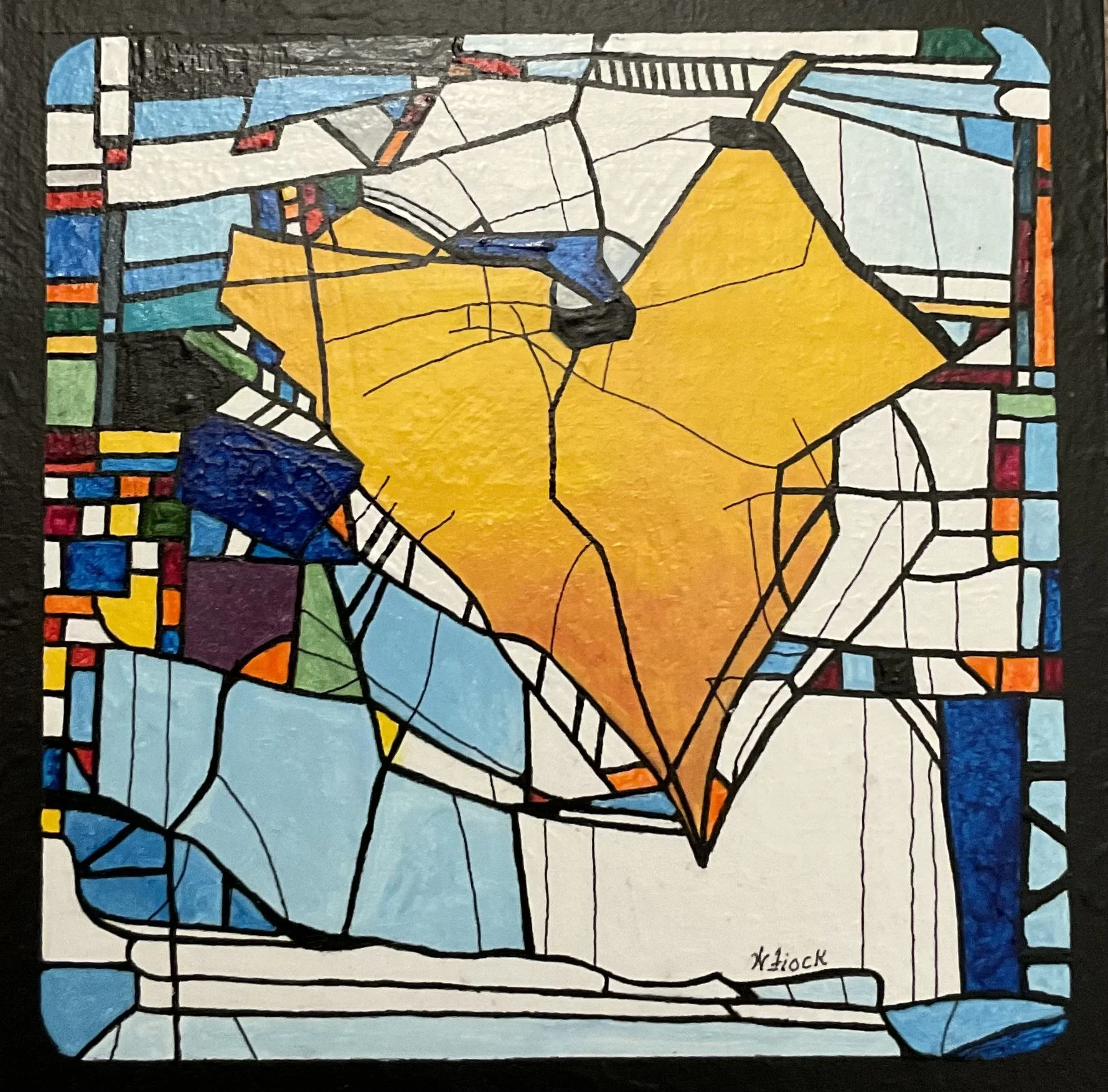 "Run" is the title, Acrylic. 5x5". New owner couldn't pass it up since colors matched a quilt she had just purchased.