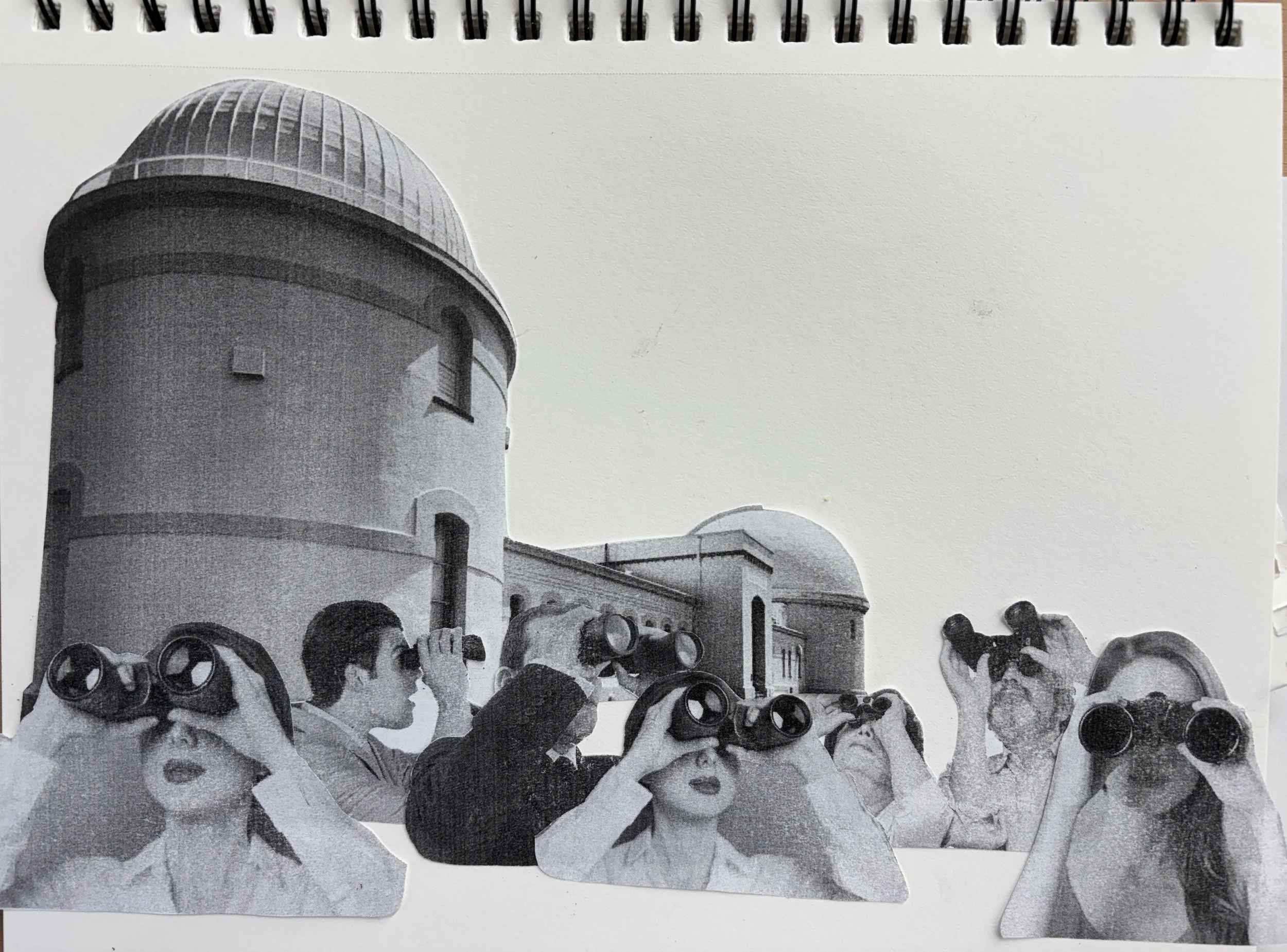 Experimenting in my sketchbook with perspective using cutouts. I missed my goal with this arrangement but it’s wonderfully weird so maybe it will become something. Post-it glue comes in a glue stick and it’s fun. 9”x12”